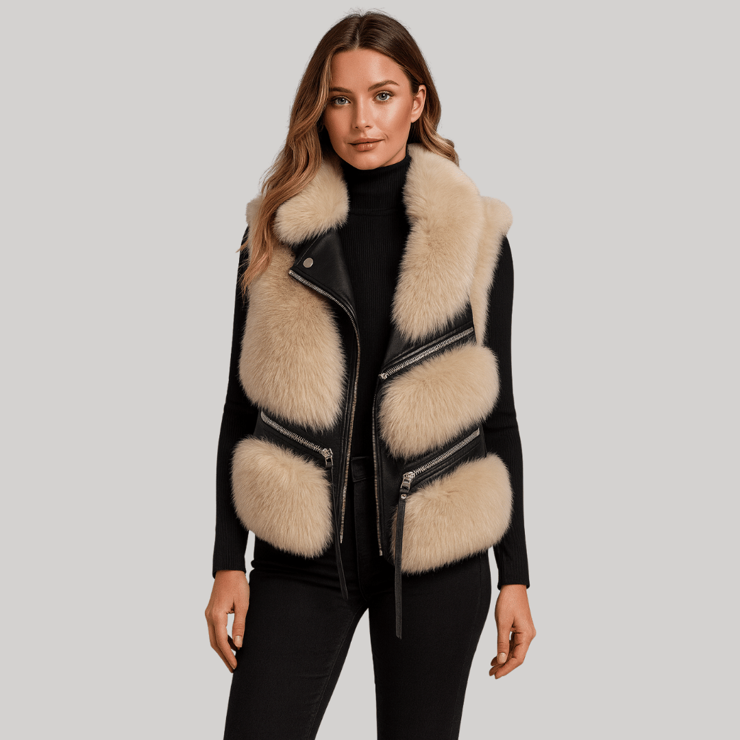 Colete Feminino em Pelo com Courino Forglows