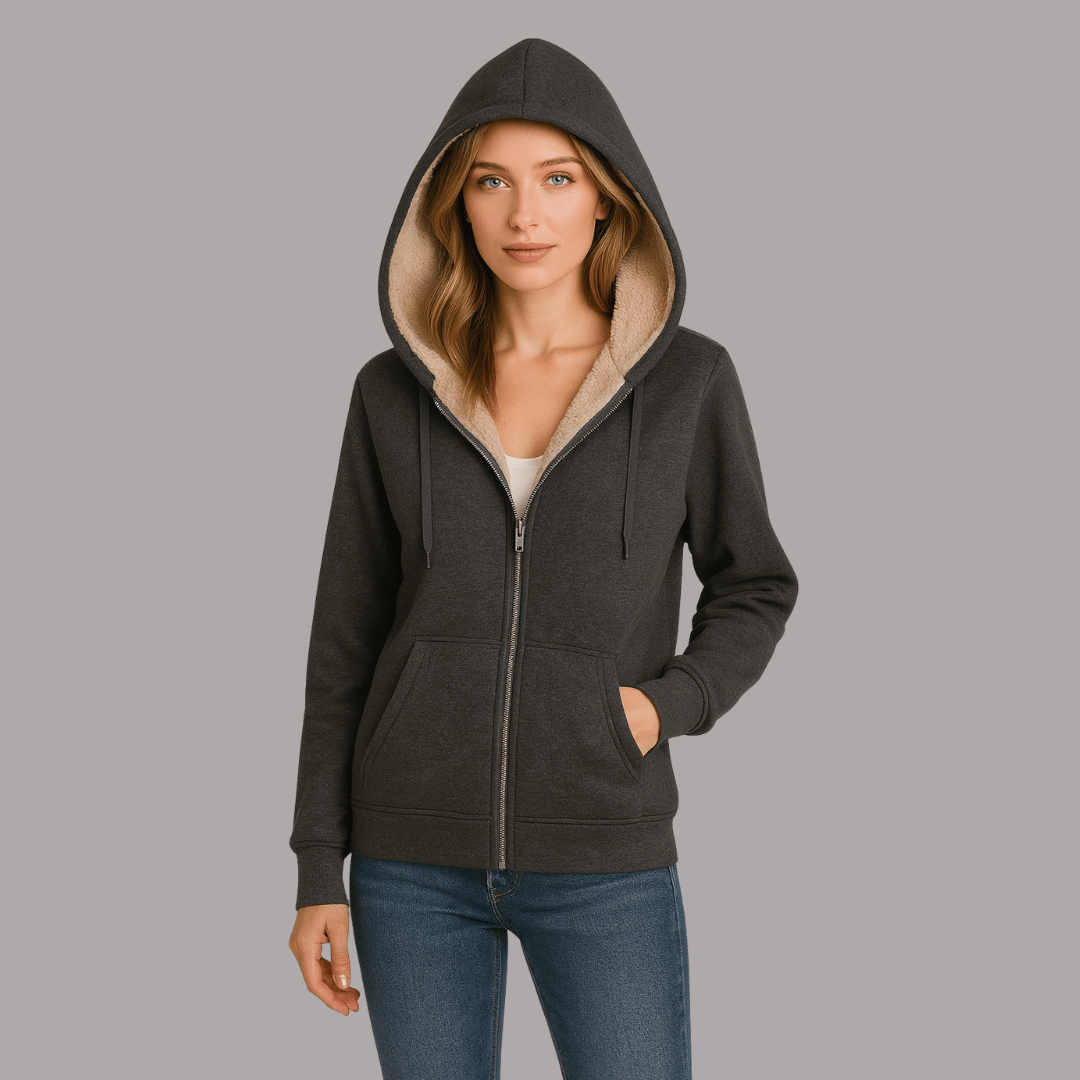 Moletom Feminino Peluciado com Touca e Zíper Forglows