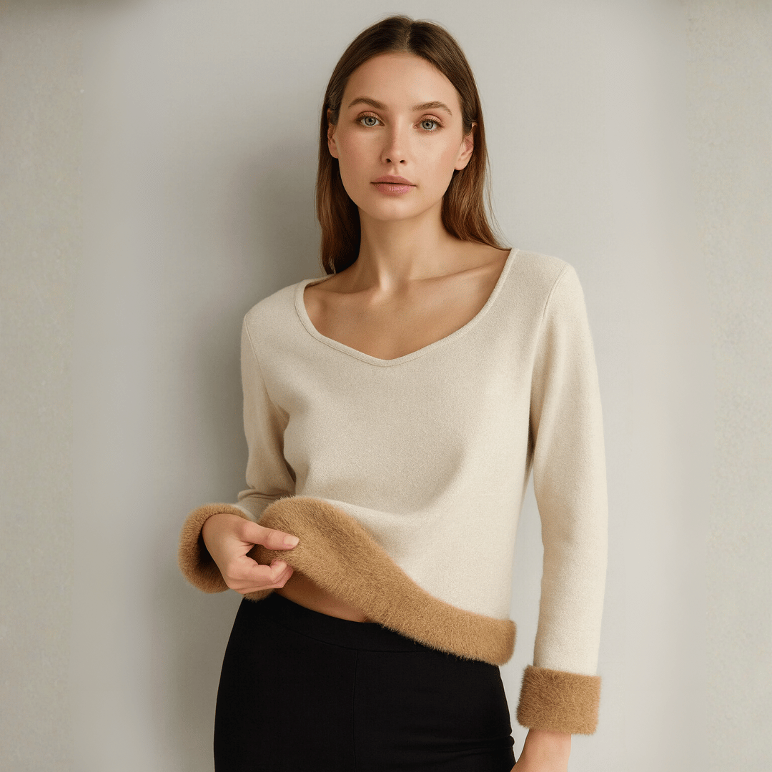 Descubra o conforto e estilo inigualável do nosso Suéter Feminino Peluciado Melissa. Confeccionado com tecido macio e luxuoso, este suéter é uma combinação perfeita de estilo e aconchego. Seu design oferece um decote elegante e favorecedor, enquanto o forro peluciado é ideal para os dias mais frios. Este suéter será uma peça-chave no seu guarda-roupa de inverno. Não espere mais para experimentar o conforto e o estilo incomparável deste suéter irresistível, e elevar seu visual a um novo patamar de elegância e conforto!