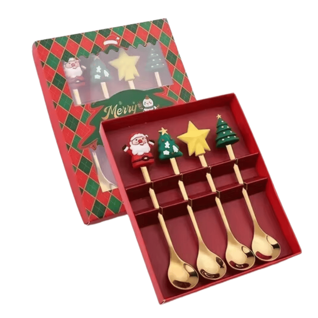 Deixe sua mesa de café mais festiva com o conjunto de 4 Colheres de Café Natalinas! Decoradas com símbolos natalinos, elas são perfeitas para adicionar charme e alegria à sua ceia ou ao café da manhã de Natal.