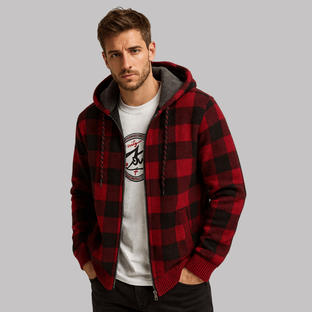 Casaco Masculino de Fio Peluciado com Capuz Xadrez Forglows