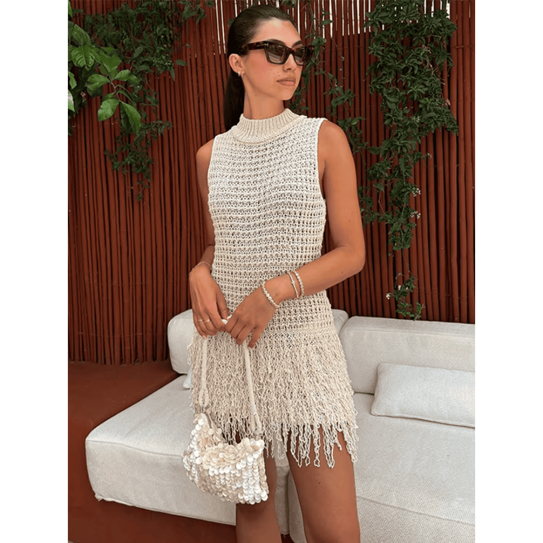 Vestido Feminino Curto de Tricô com Franjas Forglows